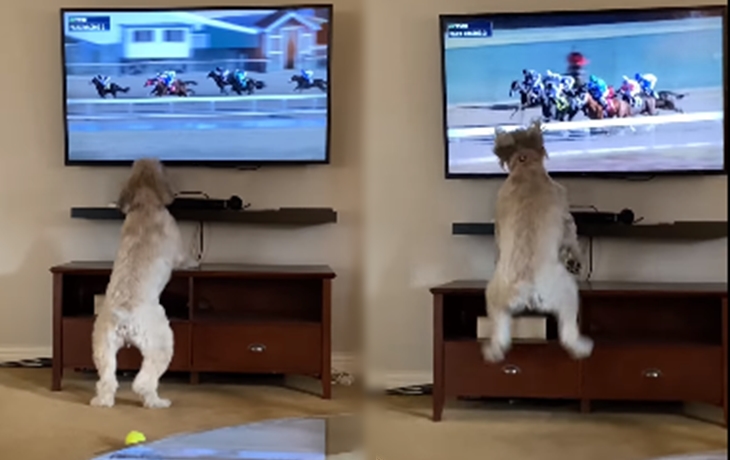 경마 중계를 즐기는 강아지가 보인 놀라운 반응(+동영상)