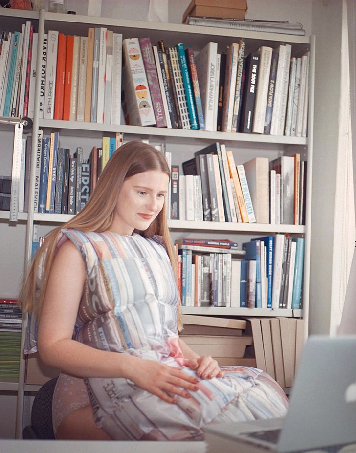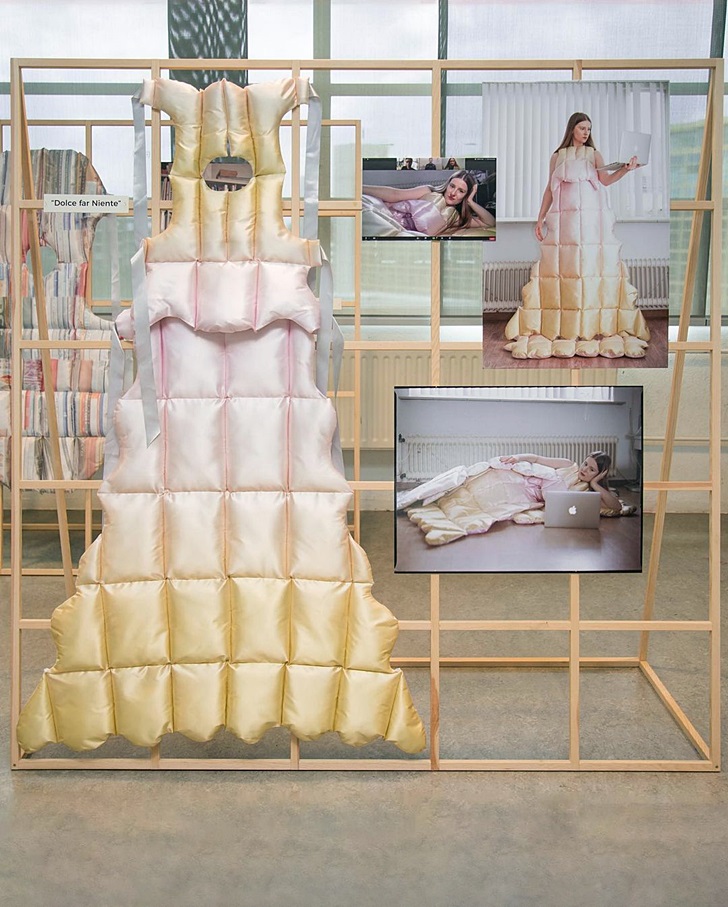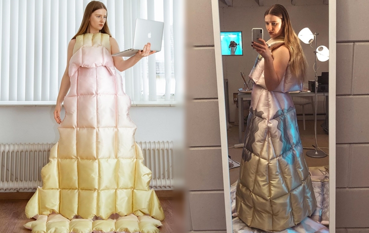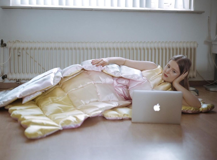 디자이너는 이 드레스를 통해 집에 있을때 속옷을 입을 필요도 없이 알몸으로 바로 드레스를 입기만 하면 집안 어디서든 바로 편안하게 쉴 수 있다는 걸 장점으로 이야기를 하고 있다고 합니다. 그녀는 이불 드레스를 통해 코로나로 인해 봉쇄된 상황에서 집안에 머물러야 하는 이유를 설명하고 싶었다고 하는데요. 그렇다면 과연 그녀가 제안한 이불 드레스는 어떤 모습일까요?