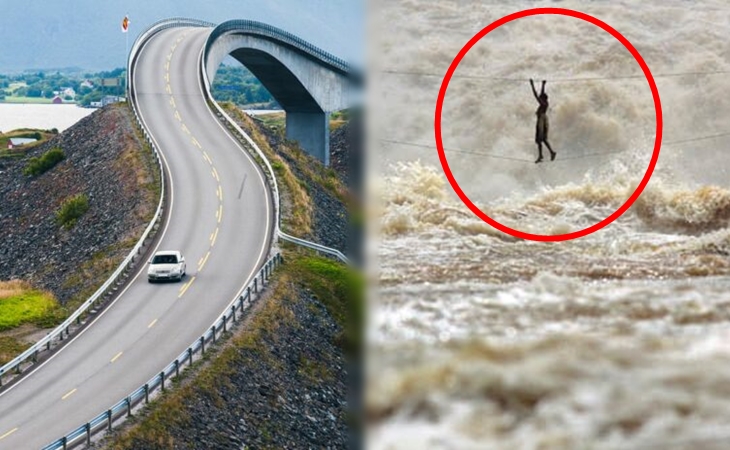 프랑스 남부에서 시작된 이 다리는 지구 상에서 가장 높은 다리 중 하나로 1,100피트(약 335m) 높이라고 합니다. 이 다리가 위험한 이유는 바로 바람 때문이라고 합니다. 에펠탑보다 더 높은 이 다리는 프랑스 파리와 스페인을 연결하는 다리로 8,000피트(약 2.5km)의 길이를 자랑하고 있다고 하는데요. 강풍이 부는 날이면 차가 흔들릴 정도로 조금이라도 방심하면 큰 사고로 이어진다고 합니다.