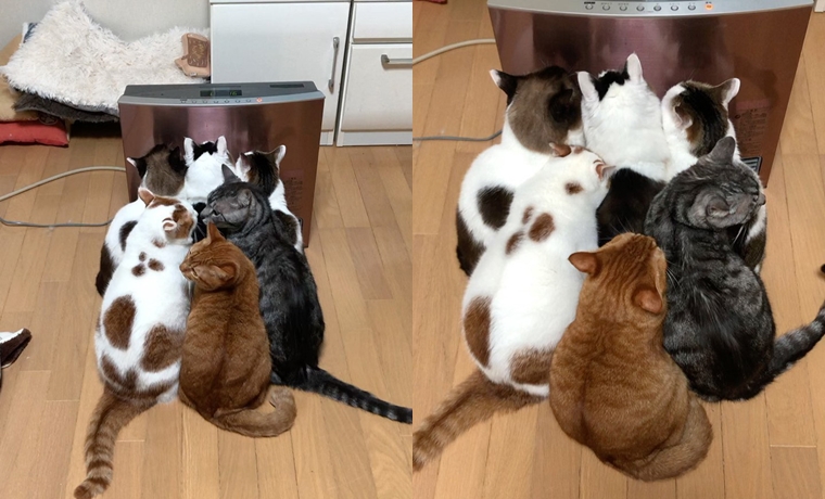 일본에서 6마리의 고양이를 키우고 있는 한 네티즌은 어느 날 난로 앞에 모여 있는 6마리의 고양이들의 모습을 발견했다고 합니다. 그리고 그 모습이 너무나 귀여워 자신의 SNS 계정을 통해 고양이들의 모습을 공유했다고 합니다.