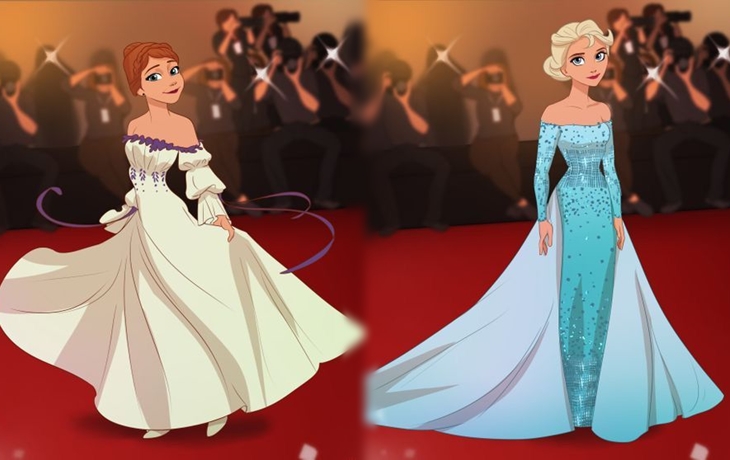 시상식에 드레스를 입고 등장한 디즈니 공주들을 그린 아티스트 화제