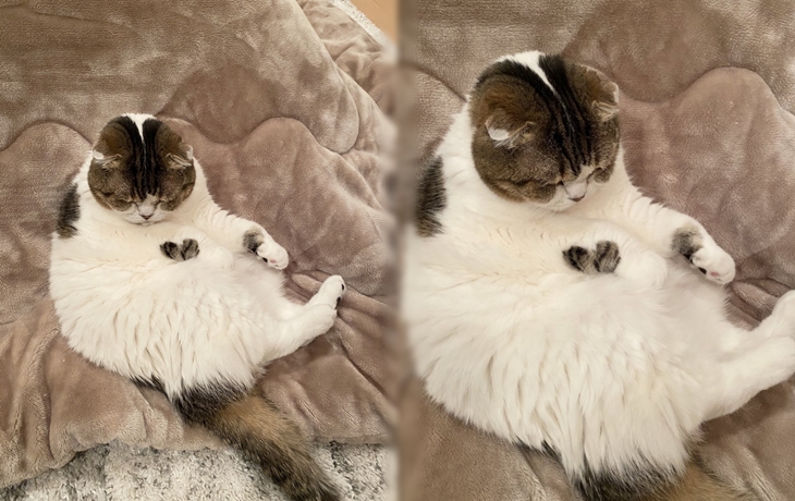 너무나도 편해보이는 뚱냥이 포즈에 난리난 네티즌들(+반응)
