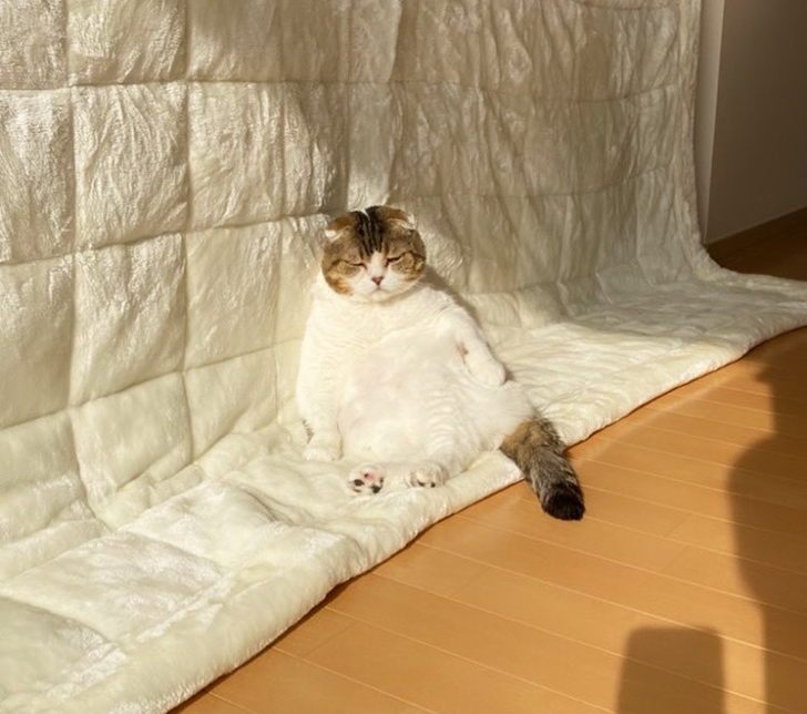 네티즌의 공유한 사진 속에 고양이는 러그 위에서 마치 사람처럼 너무나도 편안한 자세로 햇볕을 즐기며 낮잠을 자고 있는 모습이 담겨 있다고 합니다. 많은 네티즌들이 이 단순한 사진에 난리 난 이유는 바로 자세 때문이라고 하는데요. 뚱냥이의 자세가 마치 사람처럼 너무나도 편안한 포즈를 취하고 있었기 때문이라고 합니다.