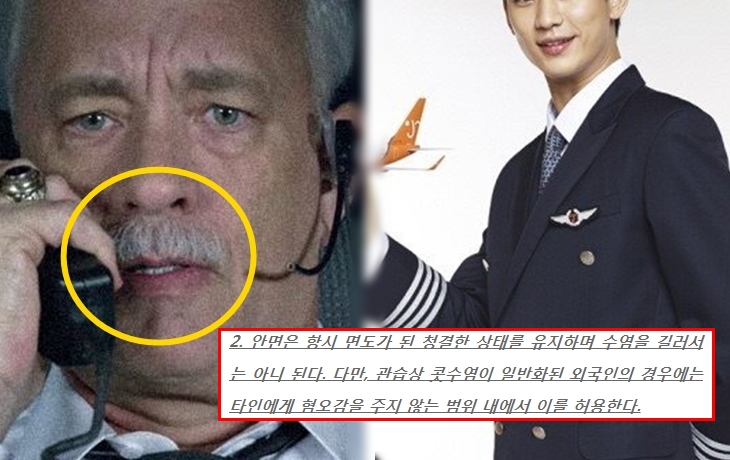 즉, 수염을 기를 경우 수염으로 인해 산소마스크가 얼굴에 완전히 밀착되지 않아 제대로 산소공급이 되지 않을 경우 저산소증으로 인해 의식을 잃을 가능성이 높기 때문이라고 합니다. 이에 각 항공사들은 사규가 아닌 항공기를 운행할 때 반드시 적용되는 운항규정에 의거해 기장들의 수염을 엄격히 제안을 하고 있다고 합니다. 하지만 중동 및 일부 국가들에서는 종교적인 이유 등으로 인해 이러한 규정이 제대로 지켜지고 있지 않다고 합니다.