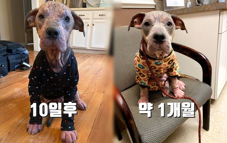 '같은 개 맞아?' 피부병이 심한 유기견에게 4개월 후 생긴 놀라운 변화