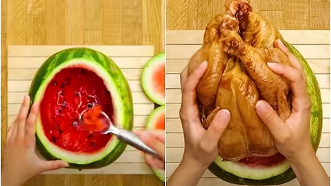 더운 여름하면 생각나는 대표적인 과일 중 하나는 바로 수박입니다. 수박에는 수분과 더불어 각종 영양분이 많다보니 갈증과 더불어 체력 회복에 의외로 좋은 과일이죠. 그런데 외국에서는 이런 수박과 더불어 의외에 식재료를 사용한 요리가 화제가 되고 있습니다. 의외에 식재료는 다름 아닌 '닭고기' 입니다. 수박과 닭고기의 조합? 그 맛이 과연 어떨지 생각만 해도 끔찍하다는 분들도 있겠지만, 의외로 달콤하면서도 신맛이 나는 요리라고 하는데요. 그럼 과연 어떻게 만드는 걸까요? 1. 생닭고기에 꿀,간장,겨자등을 섞은 소스를 바릅니다. 개인에 취향에 따라 양은 선택적으로 사용할 수 있습니다. (수박의 단맛과 대비되는 또 다른 닭의 맛을 내기 위함이라고 합니다.) 2. 수박의 상단 부분을 자른 다음 숟가락등을 이용해 ..