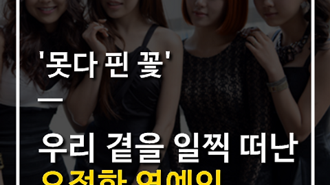 요절의 사전적 의미는 젊은 나이에 죽음 입니다. 안타깝게도 많은 인기를 얻었던 연예인들 중에 여러가지 이유로 우리 곁을 떠난 요절한 연예인들이 많죠. 최근에는 악플에 시달리다가 우울증으로 떠난 연예인들도 있고 금전적인 문제로 최악의 선택을 스스로한 연예인들 거기에 불의에 사고로 우리 곁을 떠난 연예인들도 많죠. 한때는 최고의 별이었지만 지금은 우리 곁을 떠난 요절한 연예인 BEST5를 WIKIVIKI와 함께 알아보도록 하겠습니다. 그룹 레이디스 코드 멤버 은비,권리세 지난 2014년 9월 3일 레이디스 코드 멤버들이 타고 있던 차량이 영동고속도로 신갈 분기점 부근에서 가드레일을 들이 받는 교통사고를 당합니다. 이 사고로 차량에 탑승하고 있던 레이디스 코드 멤버들 중에서 은비는 사고 당일에 사망을 하였고,..